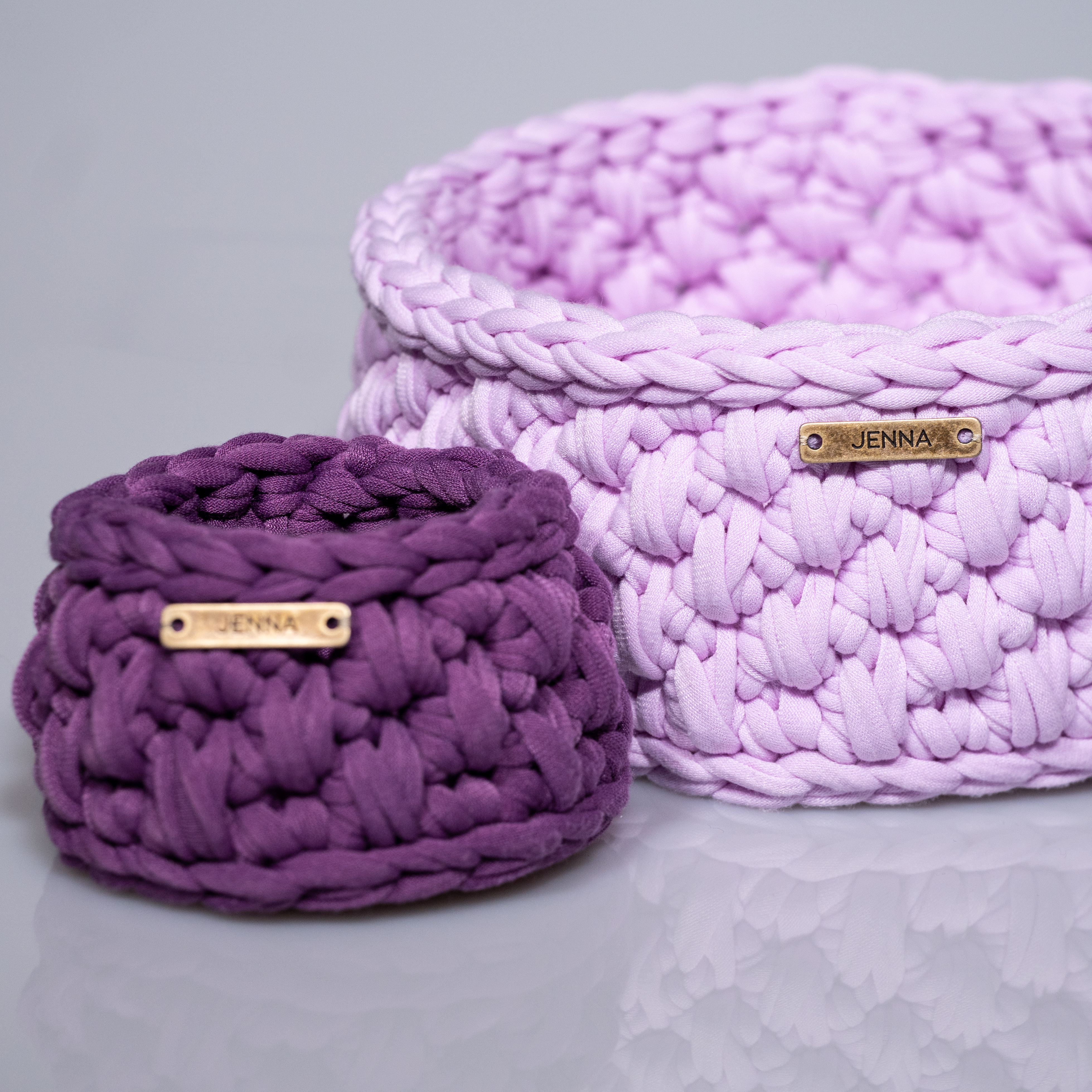 Πλεκτά καλαθάκια σε χρώμα λιλά & μωβ.