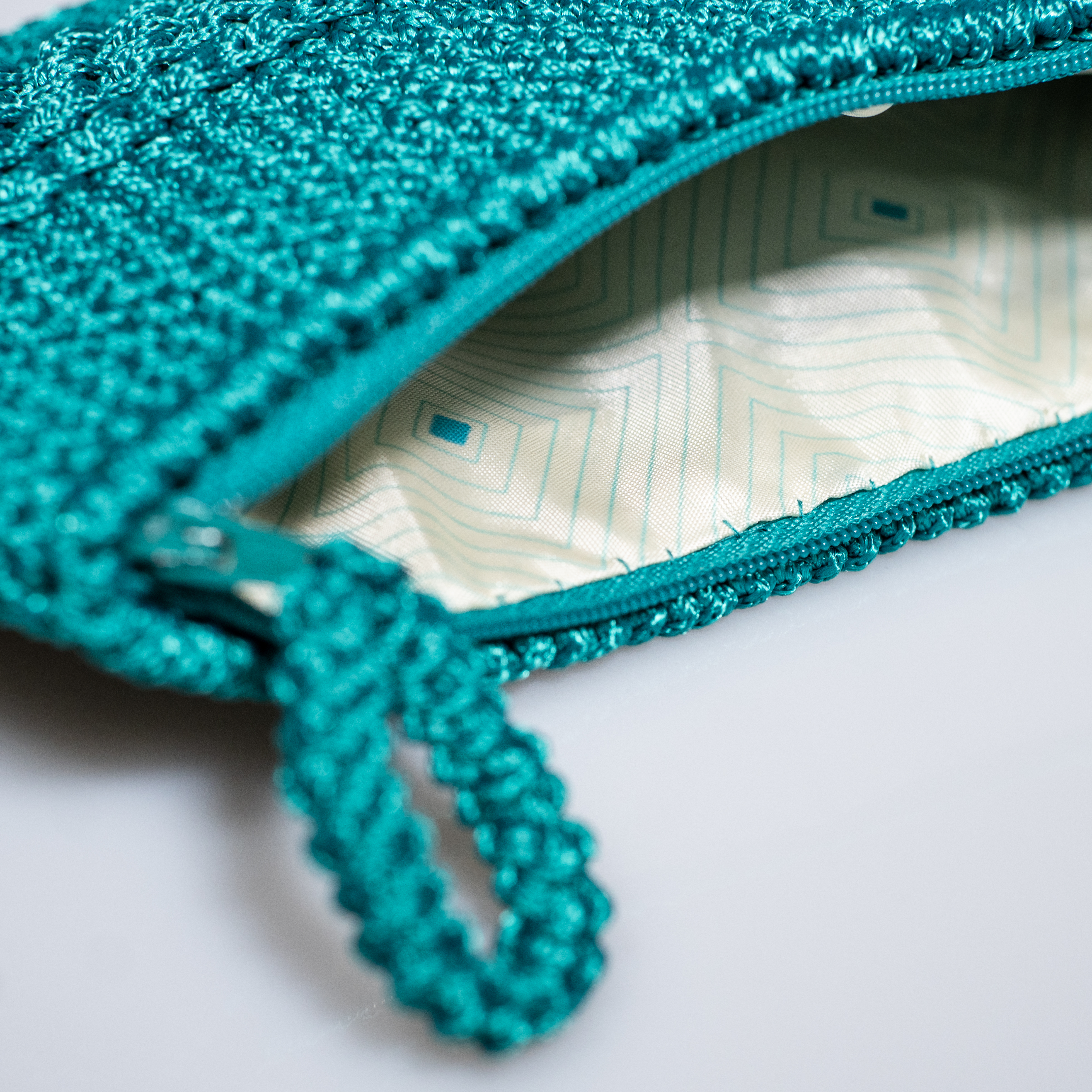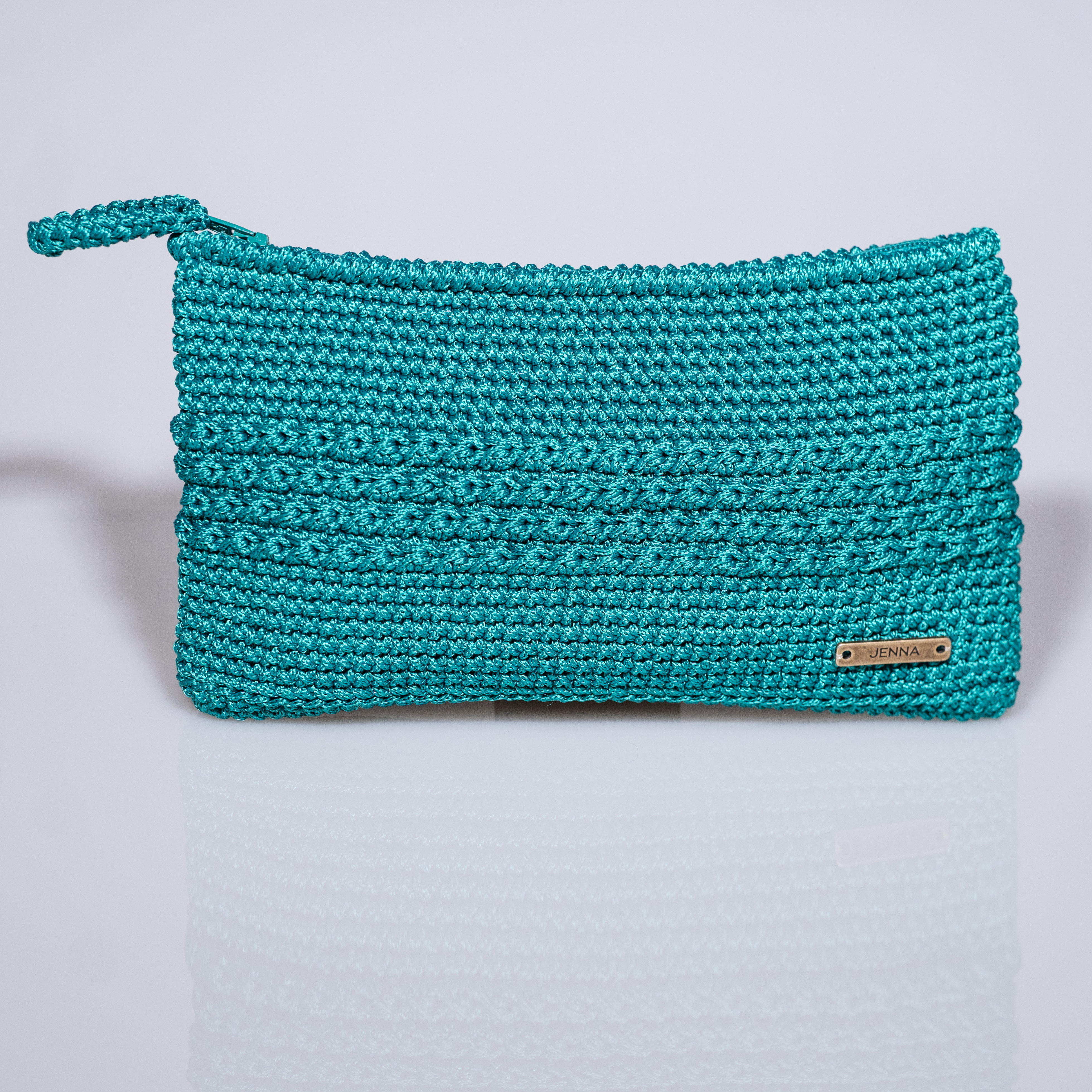 Πλεκτό τσαντάκι μικρού μεγέθους σε χρώμα σμαραγδί*, με φερμουάρ και φόδρα. Χωράει όλα τα απαραίτητα για μία σύντομη έξοδο σας από το σπίτι.